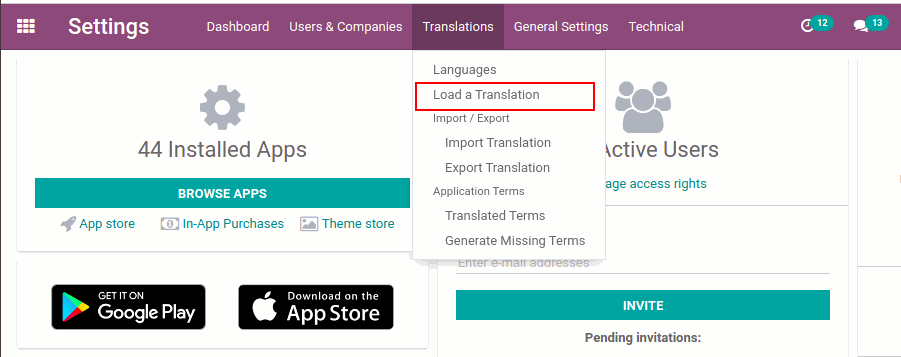 Go to Settings > Translations > Load a Translation