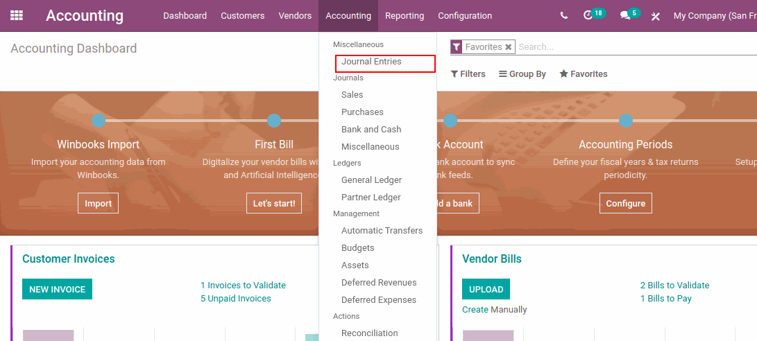 Go to Accounting > Miscellaneous > Journal Entries