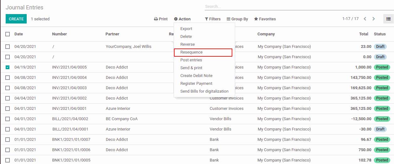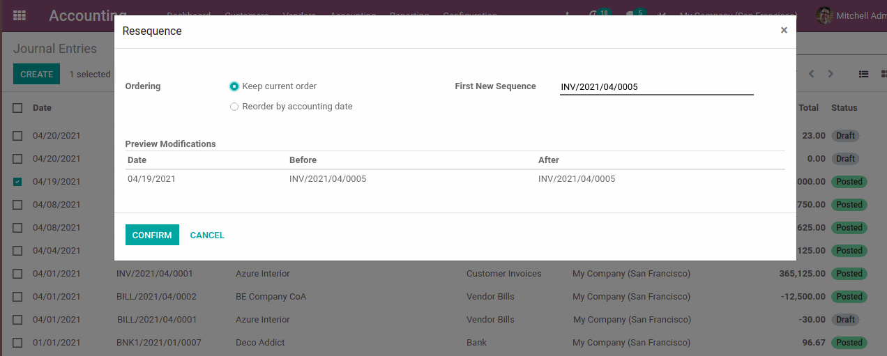 In odoo 14, unlike in older versions, you don’t have options to configure the sequence number inside the journal. Here we are going to see how to resequence journal entries in odoo 14.
