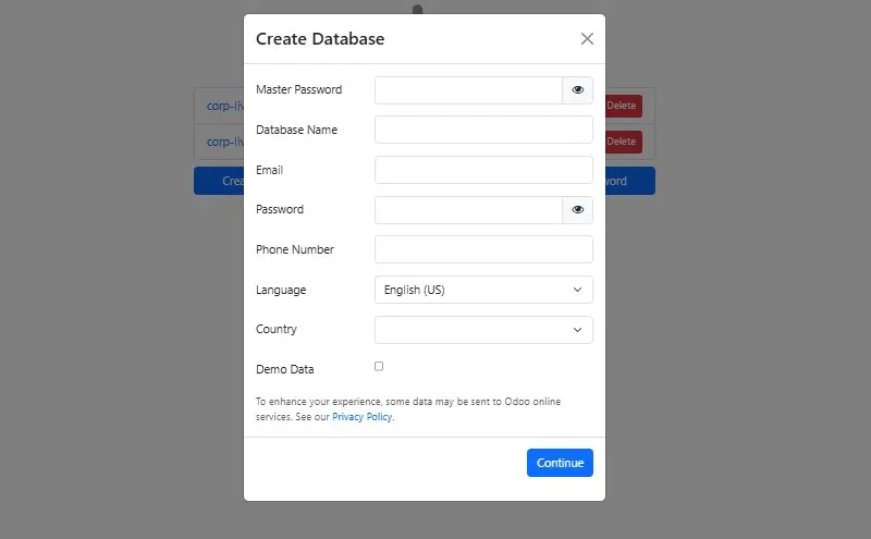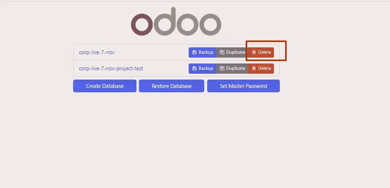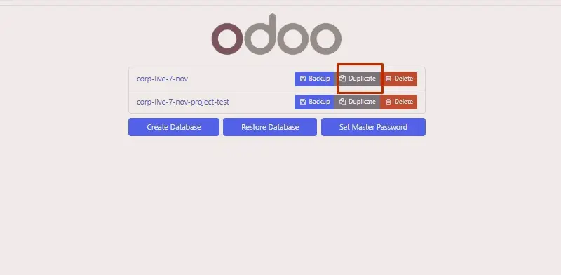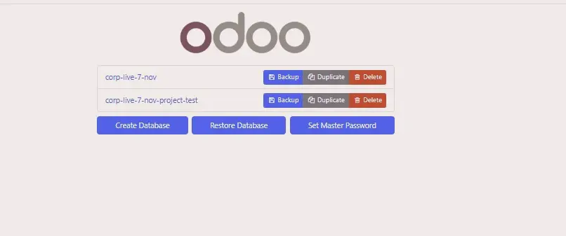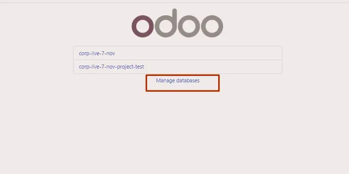 Now the user will navigate to odoo database manager screen, here all the databases are listed