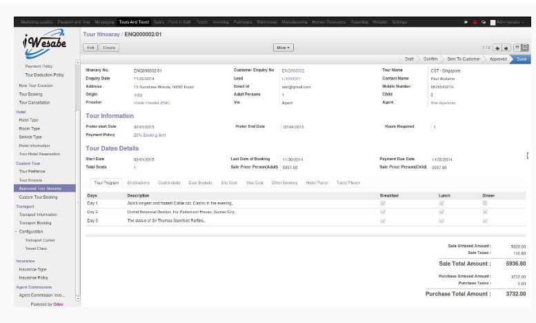 Drive a rich customer experience with the aid of Odoo Open ERP designed specifically for the travel sector. Our technology solution is crafted to derive immense value in every stage of the routine operations in this particular segment. The end to end solution also integrates hotel booking, transport and other associated services involved in your customer’s journey from source to destination. The systemic totally safe for online transactions and improves the overall user experience for your customers. Eliminate costly overheads, remove staff dependency, brings down the time taken to carry out routine tasks, avoid human errors and save man-hours with the automation of the tools and grow your business
